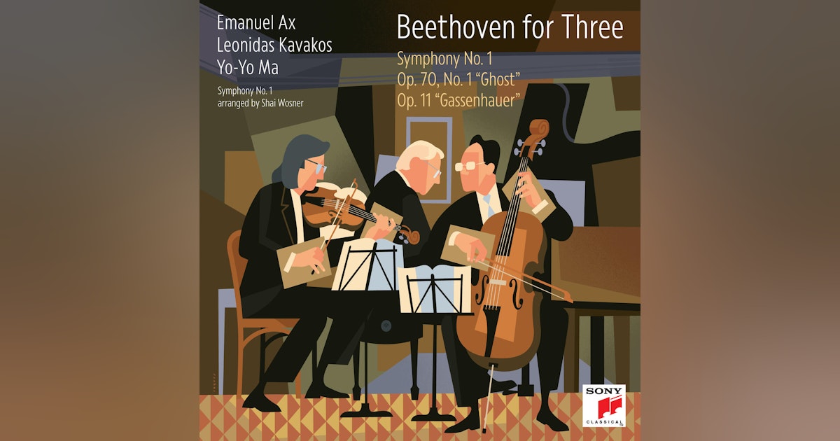 This is the fourth album in Emanuel Ax, Leonidas Kavakos, and Yo-Yo Ma's Beethoven for Three series, featuring Symphony No. 1 (Op. 21) and the ‘Gassenhauer’ (Op. 11) and ‘Ghost’ (Op. 70, No. 1) piano trios.
